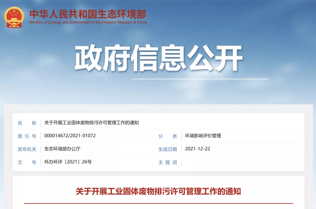生態(tài)環(huán)境部2022年將工業(yè)固體廢物納入排污許可管理